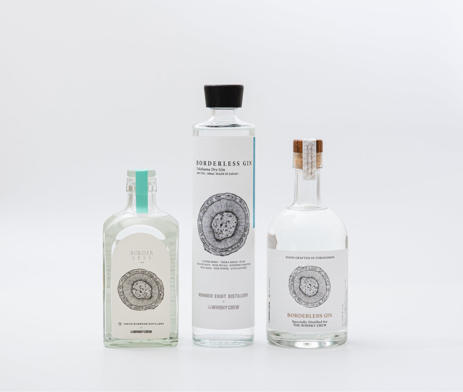 蒸溜所の垣根を越え、3つの都市型蒸溜所(ナンバーエイト・ディスティラリー/虎ノ門蒸留所/東京リバーサイド蒸溜所 by The EthicalSpirits&Co.)が、持ち寄った9つのボタニカル(トマト、プラム、ローズ、ホーリーバジル、チコリルート、ピンクペッパー、青ミカン、アボカドの種、ジュニパーベリー)を独自に解釈し、各蒸溜所の個性を活かしたジン、「ボーダーレスジン」を開発。