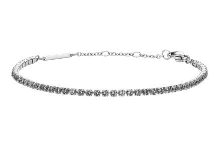 シルバーのテニスブレスレットは、重厚な輝きを持つグレーブラックのナイトフォール・プレシオサ・クリスタルをあしらい、よりエレガントに洗練させたデザインに仕上げました。サイズは2種類ありどのような手首にもフィットします。