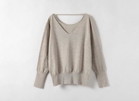 やや衿ぐりを広めのVネックとラウンドネックのどちらを前にしても着用していただける、前後両用のプルオーバーです。