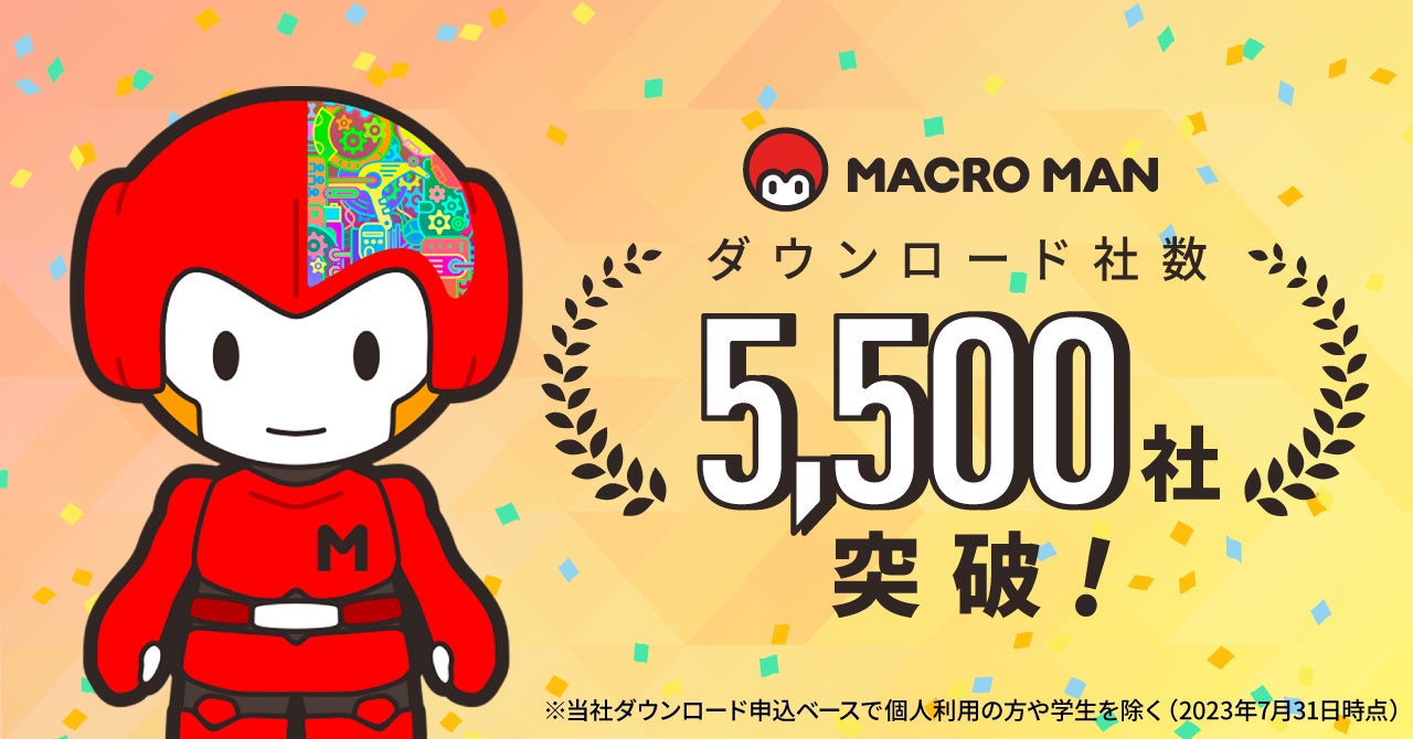 完全無料RPAツール「マクロマン(R)」がダウンロード社数5,500社を突破