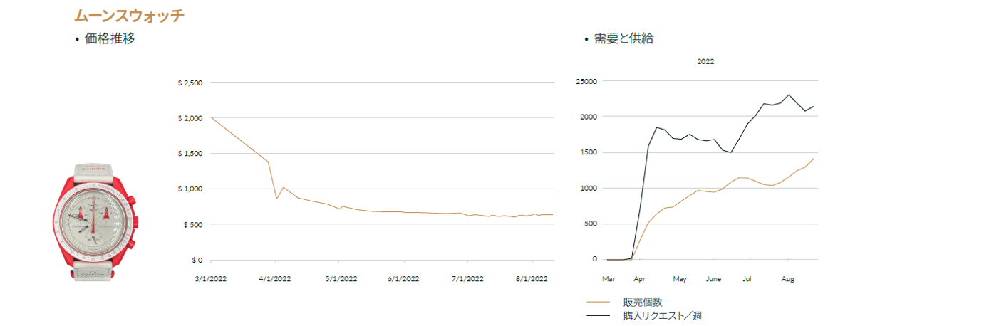 市場における価格変動にはさまざまな要因がありますが、第一に需要と供給のバランスが決定要素となります。人気の時計モデルが多く供給されれば、販売価格が低く抑えられるという仕組みです。しかし一方で、オメガ スピードマスターなど供給量とともに需要も大きく上昇したモデルもあります。スウォッチとオメガの共同プロジェクトにおいてデザインされたスピードマスター ムーンウォッチの革新的なスウォッチバージョン「ムーンスウォッチ」は、大成功を収めました。また、カルティエもより大きな需要を獲得しています。