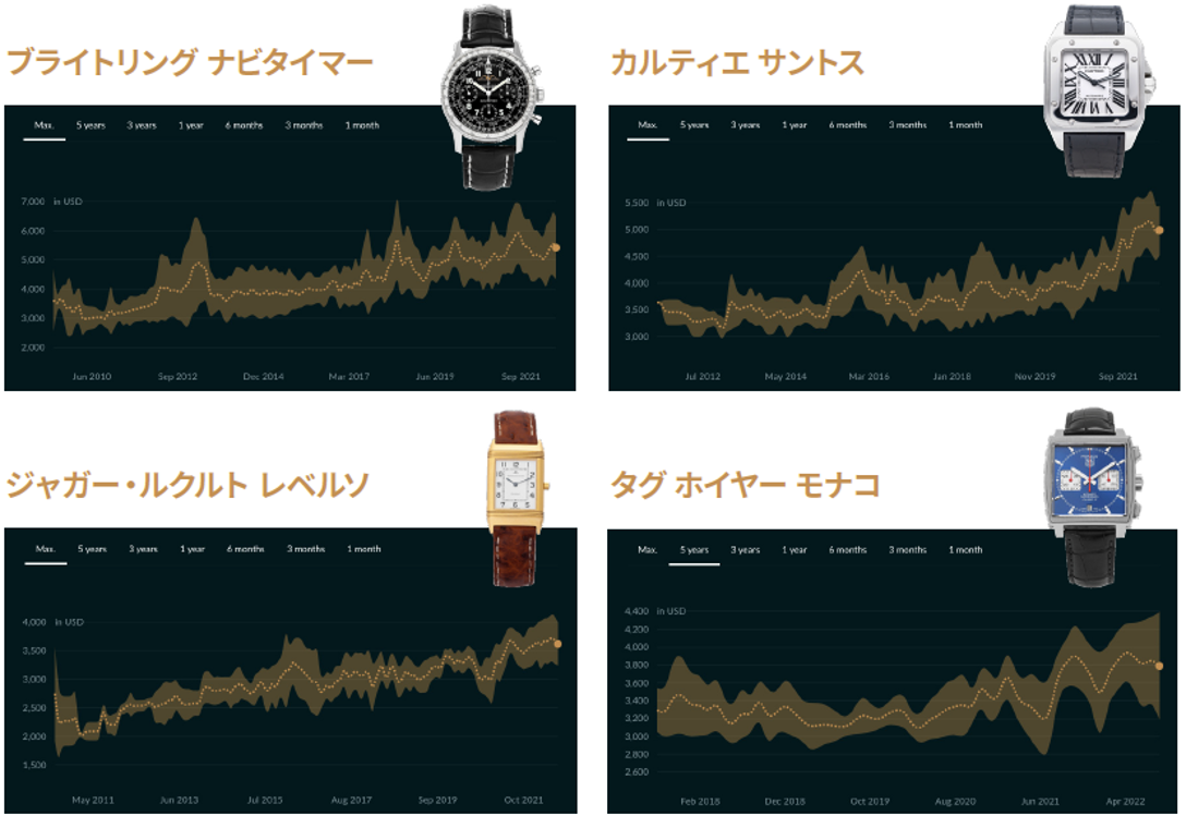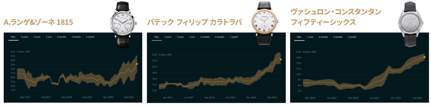カルティエ サントスやブライトリング ナビタイマー、ジャガー・ルクルト レベルソ、タグ・ホイヤー モナコなどの定番のモデルの価格が引き続き上昇する中、A.ランゲ&ゾーネ1815、パテック フィリップ カラトラバ、ヴァシュロン コンスタンタン フィフティシックスなどのハイエンドドレスウォッチも、その価値を維持、もしくは上昇させ、ドレスウォッチの人気という新たなトレンドを支えています。人気があると同時に投資目的にも期待できる「ドレスウォッチ」に対する世間からの欲求が大きく復活してきていることが分かります。