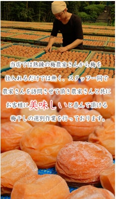 改善するため、直接自身の目で見て、体感して本当に良い商品のみを仕入れをすると決めた南様。梅のことをほとんど知らなかった南様は、休日を返上し、自身も付き合いのある梅農家で1年以上の修業を行い、生産者の想いを知ることとなった。