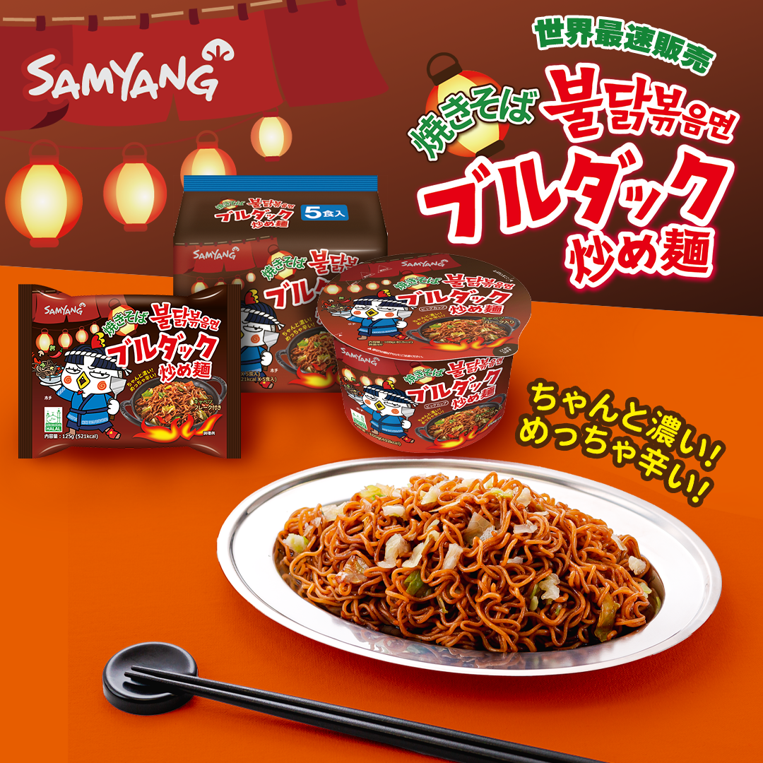 株式会社三養ジャパン(東京都新宿区 代表取締役:洪 範準)は焼きそばの味を再現した新商品「焼きそばブルダック炒め麺」を日本で世界最速発売いたします!
