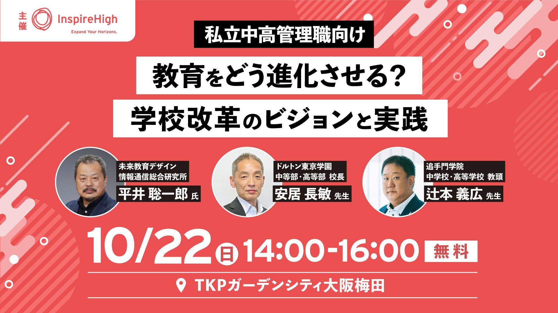 私立中高管理職向け「教育をどう進化させる?学校改革のビジョンと実践」対面セミナーを10月22日(日)に大阪で開催