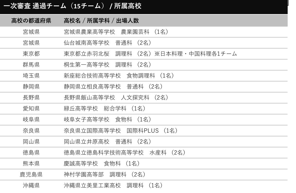 「うまさ開発!高校生うみうまレシピコンテスト」は、全国の高校生を対象に、日本料理/西洋料理/中国料理の3部門で、東日本大震災被災地地域の指定された水産加工品を使用したレシピを募集しました。今回は、全国の高校26校144チームから応募があり、一次審査から全16チームが選出されました。最終審査会当日は、考案したレシピを実際に調理・プレゼンテーションを披露し、日本料理/西洋料理/中国料理の各界で活躍される方々を審査員にお招きし、最終審査を行います。入賞したレシピは一般の方への販売も予定しています。