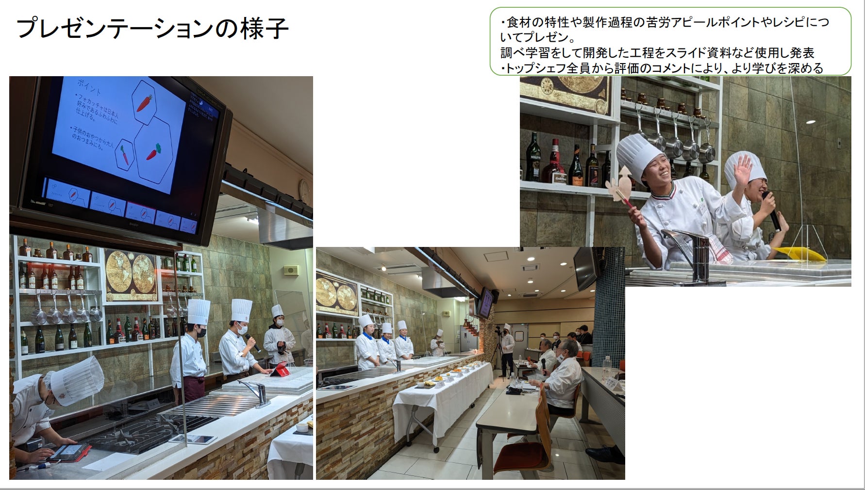 調理に加えて1チーム5分程度のプレゼンテーションを実施。