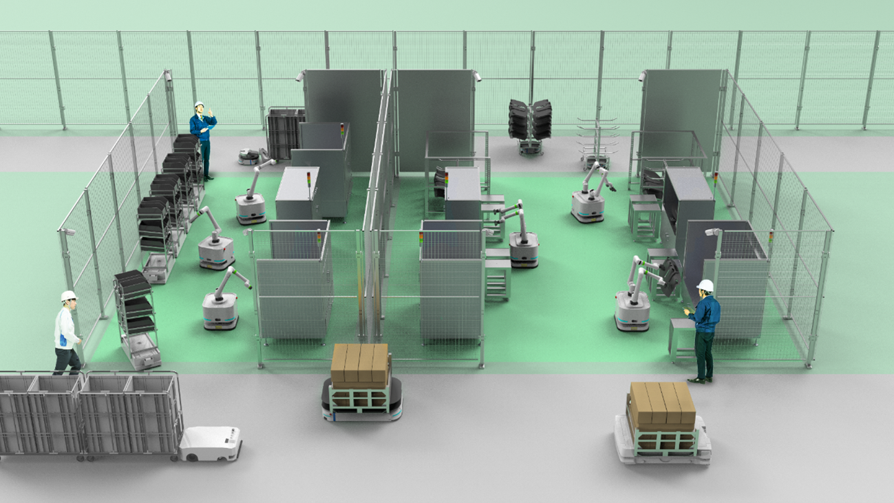 SBIRを通じて、導入プロセスでのAI (大規模言語モデル/LLM) の活用や、AMRの高度な移動技術をいかした高速かつ高精度な移動制御を実現し、生産現場の要求に耐えられるモバイルマニピュレータを実現します。