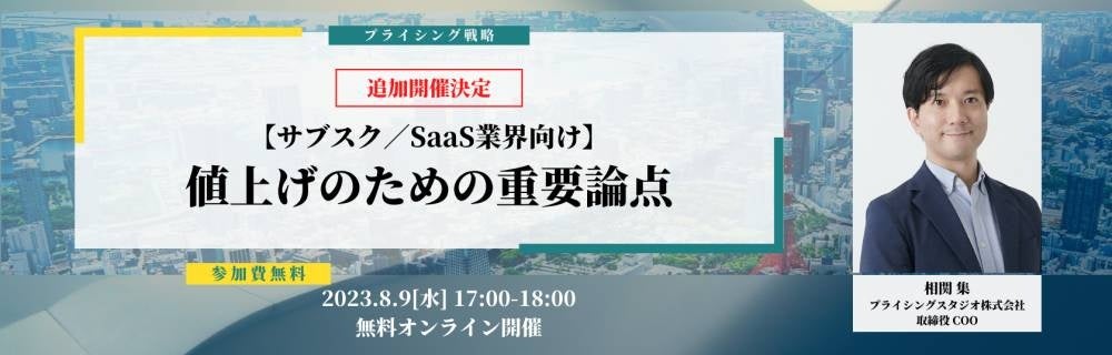 プライシングスタジオ株式会社 8月9日(水)【サブスク/SaaS業界向け】値上げのための重要論点