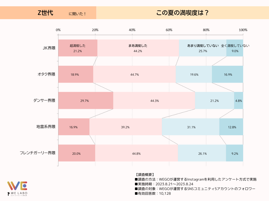 界隈ごとに見ても、“夏”と相性の良い界隈・悪い界隈はありながらも、友達同士や恋人同士など、それぞれの夏ならではのイベントや場所などで楽しみ方を見つけ、暑い夏を乗り切っていたようです。