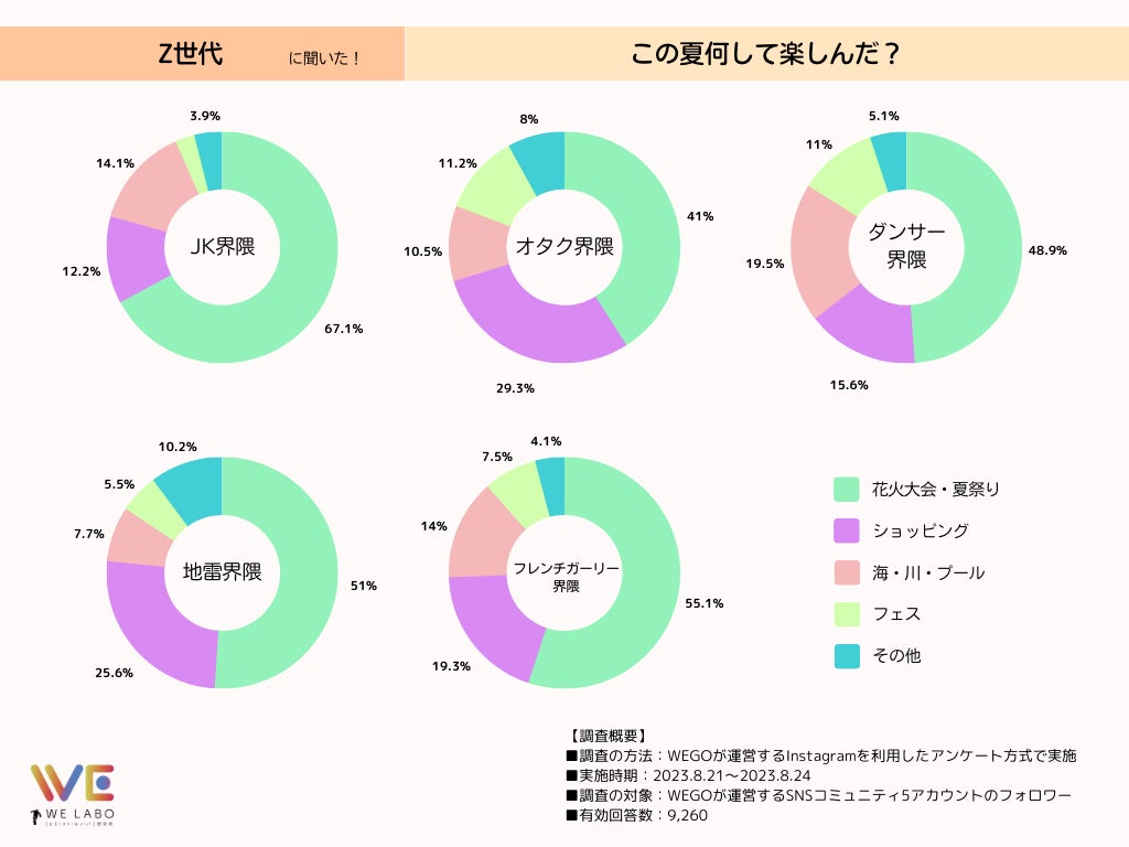 各界隈のZ世代が2023年夏、最も楽しんだのは「花火大会・夏祭り」でした。