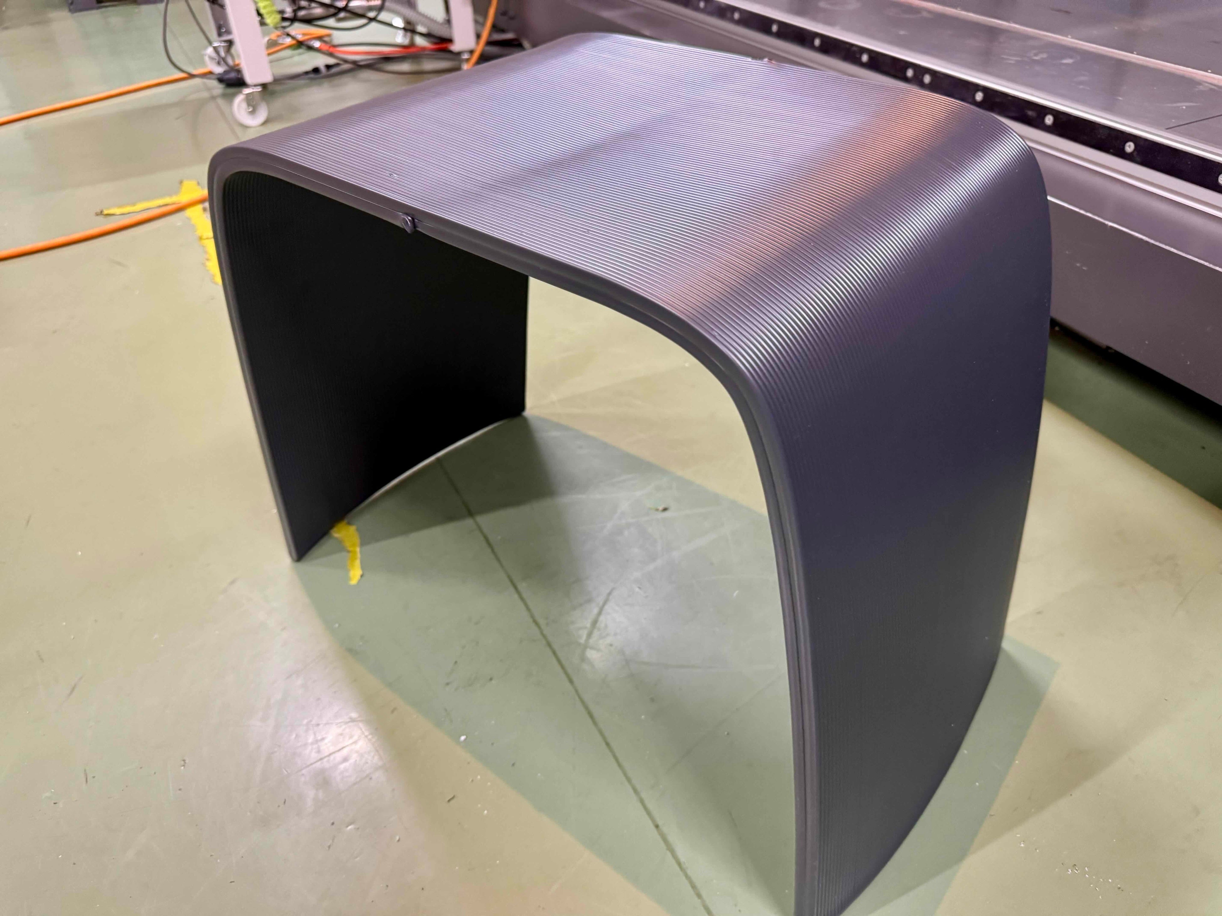 写真は上記動画で紹介した粉砕材からDirectFeedによって3Dプリントしたスツールです。