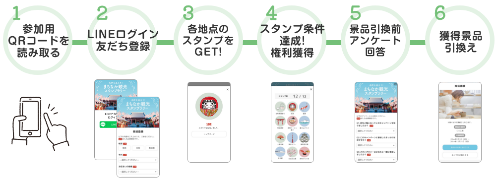 地点のPR掲載 / グルーピング / 参加同意画面 / 応募フォーム / 景品交換 /規約ページ / 参加時アンケート