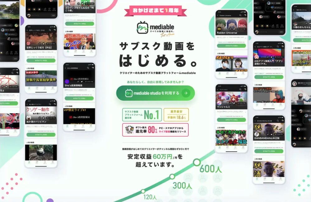 【年内手数料9.9%キャンペーン】登録ユーザー数3万人を突破!個性を発揮し、コアファンからのサブスク課金だけで生きていけるクリエイターも続々生まれています _ mediable(メディアブル)