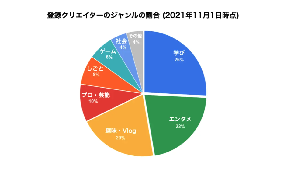 2022年2月には、カテゴリタブをリリースし新しくファンが増えやすいような環境になりました。「まなび」「エンタメ・芸能」「音楽」「VTuber・ゲーム」「Vlog・趣味」「考察・都市伝説」「社会・政治」「その他」等、ファンが好きな動画やクリエイターを見つけやすくなっています。