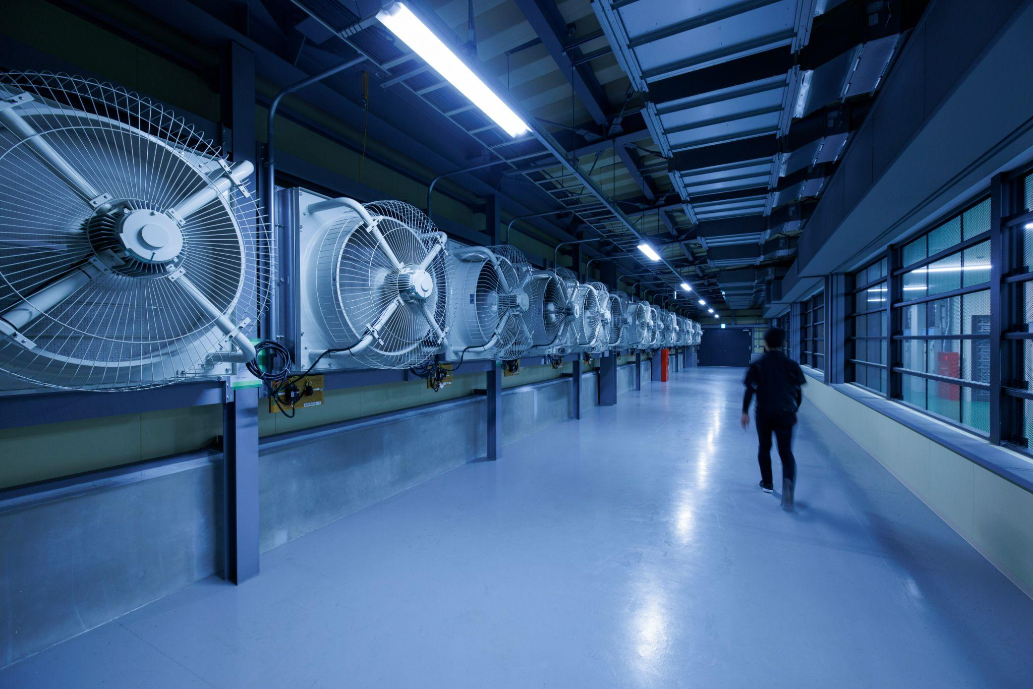 地方立地により建設コストや電気代を抑えています。サーバー冷却には外気導入型空冷を利用することで電力を削減し、脱炭素化を推進しています。