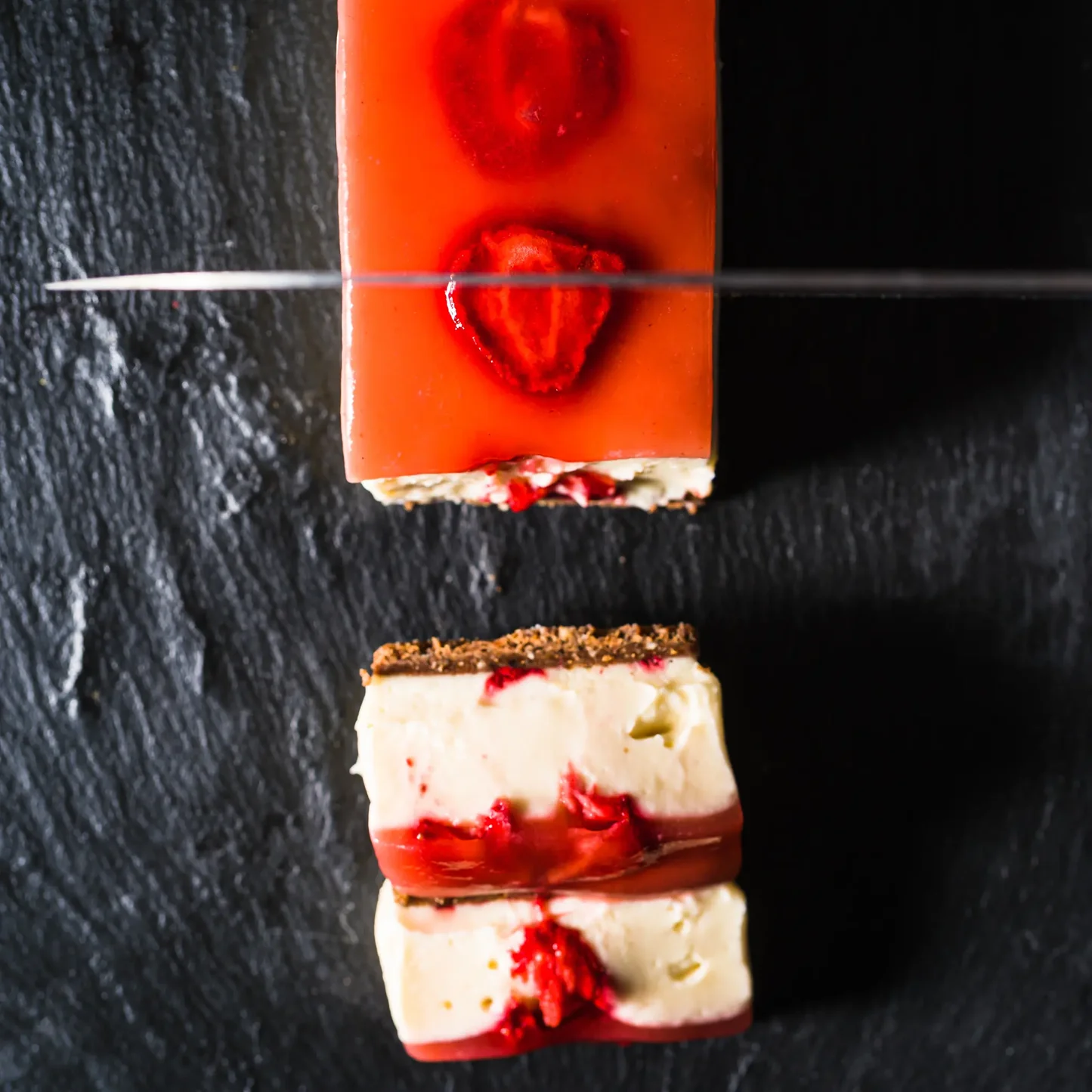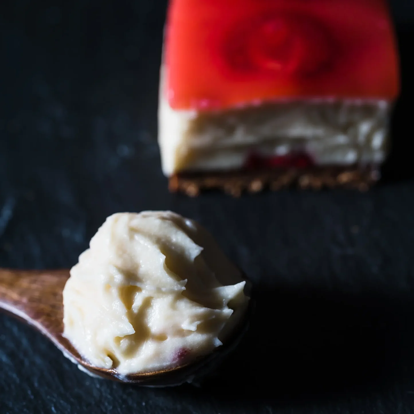 ホワイト/ショコラどちらのチーズケーキにも豆乳クリームチーズをたっぷり使用。乳・卵を使わずなめらかな口溶けと爽やかな甘みを実現しました。