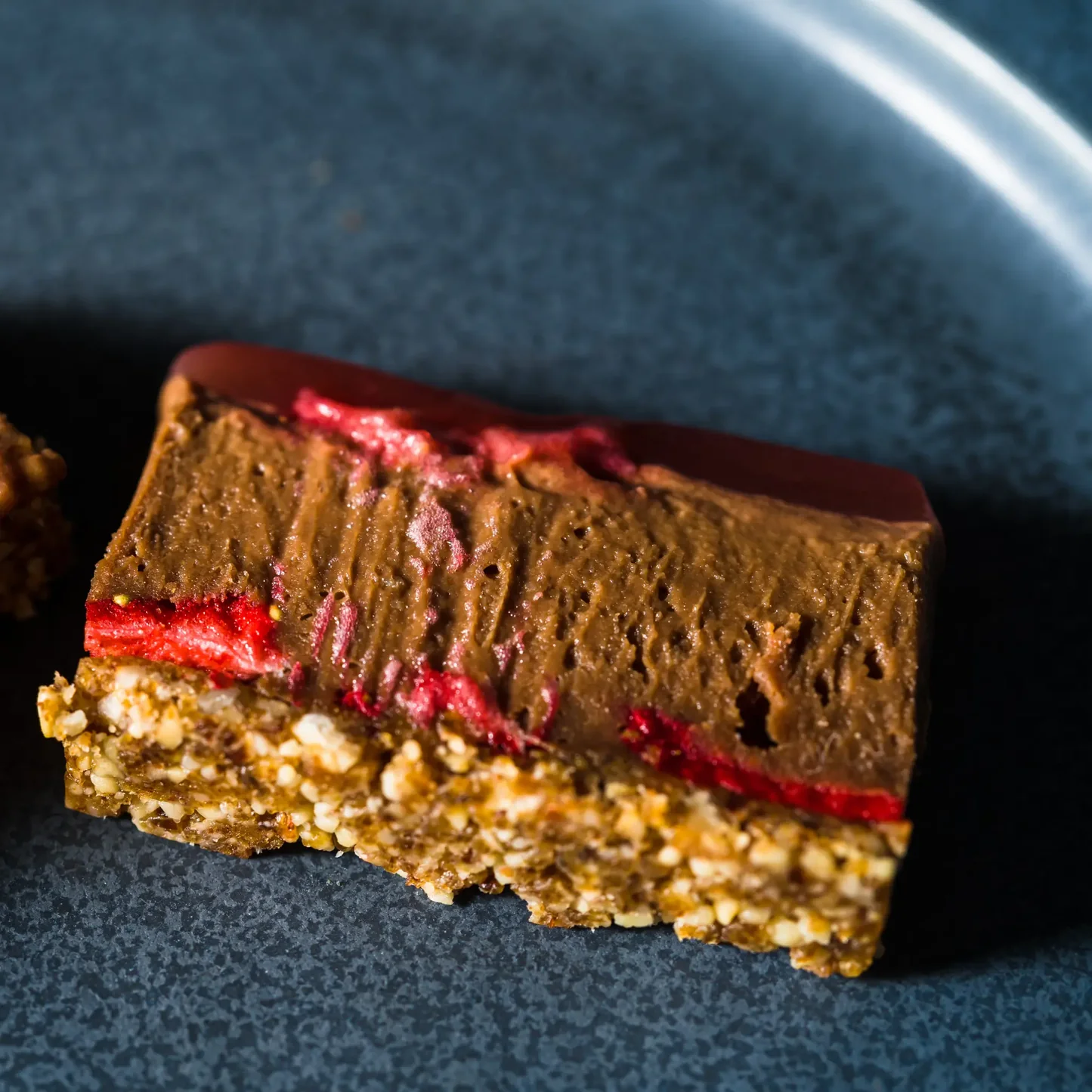 ・原材料:豆乳発酵食品、カカオバター、デーツ、甜菜糖、フレーズピューレ、豆乳クリーム、キャロブシロップ、アーモンド、ココナッツ、チアシード、ポピーシード、きなこ、抹茶、フリーズドライ苺、レモン果汁、塩、昆布 / ビタミンA、ビタミンB1、ビタミンB2、ビタミンB6、ビタミンB12、ビタミンC、ビタミンD、ビタミンE、ナイアシン、パントテン酸、葉酸、ビオチン、ビタミンK、モリブデン、リン、鉄、カリウム、カルシウム、亜鉛、銅、クロム、セレン、マンガン(シナモン・生姜等の植物由来)