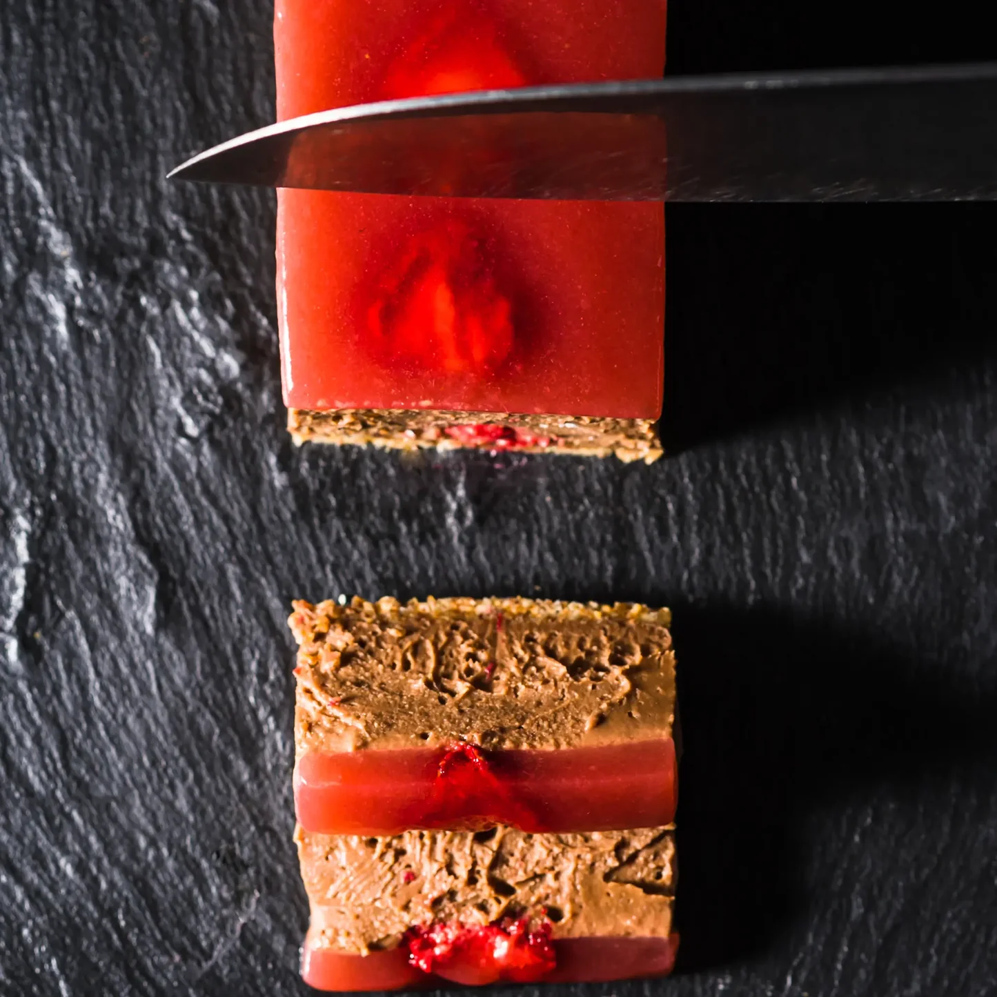 2種のフレーバーはどちらもショコラティエがこだわり抜いた、オリジナルの3層構造。andewのレシピでしか体験できない、唯一無二の味わいになっています。