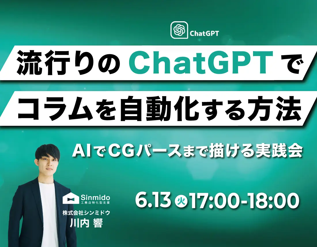【AIでパースが作れる!】流行りのChatGPTでコラムを自動化する方法/AIでCGパースまで描ける!工務店が集客力をアップするための実践会