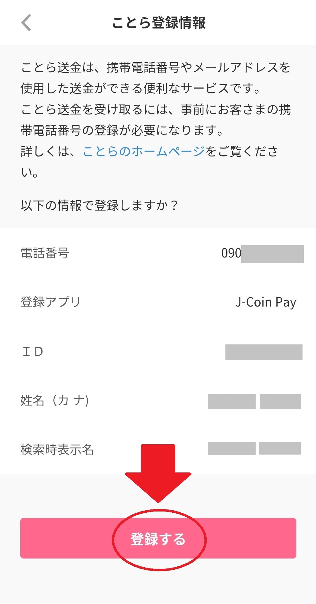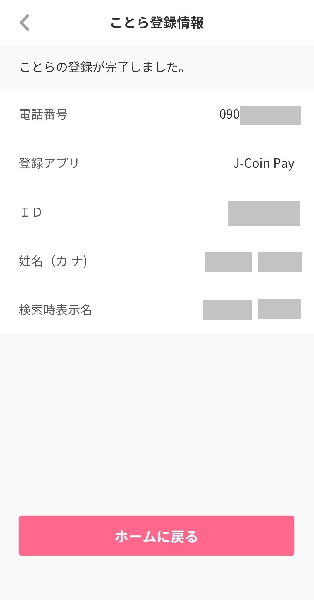 ③J-Coin Payの登録情報が反映されていることを確認し、「登録する」をタップすれば、登録完了!