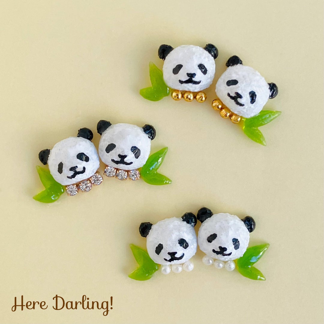 今回は、コットンパールを使ったアイテムを中心に販売します。パンダのデザインは手描きのため、ひとつひとつ顔やバランスが異なります。
