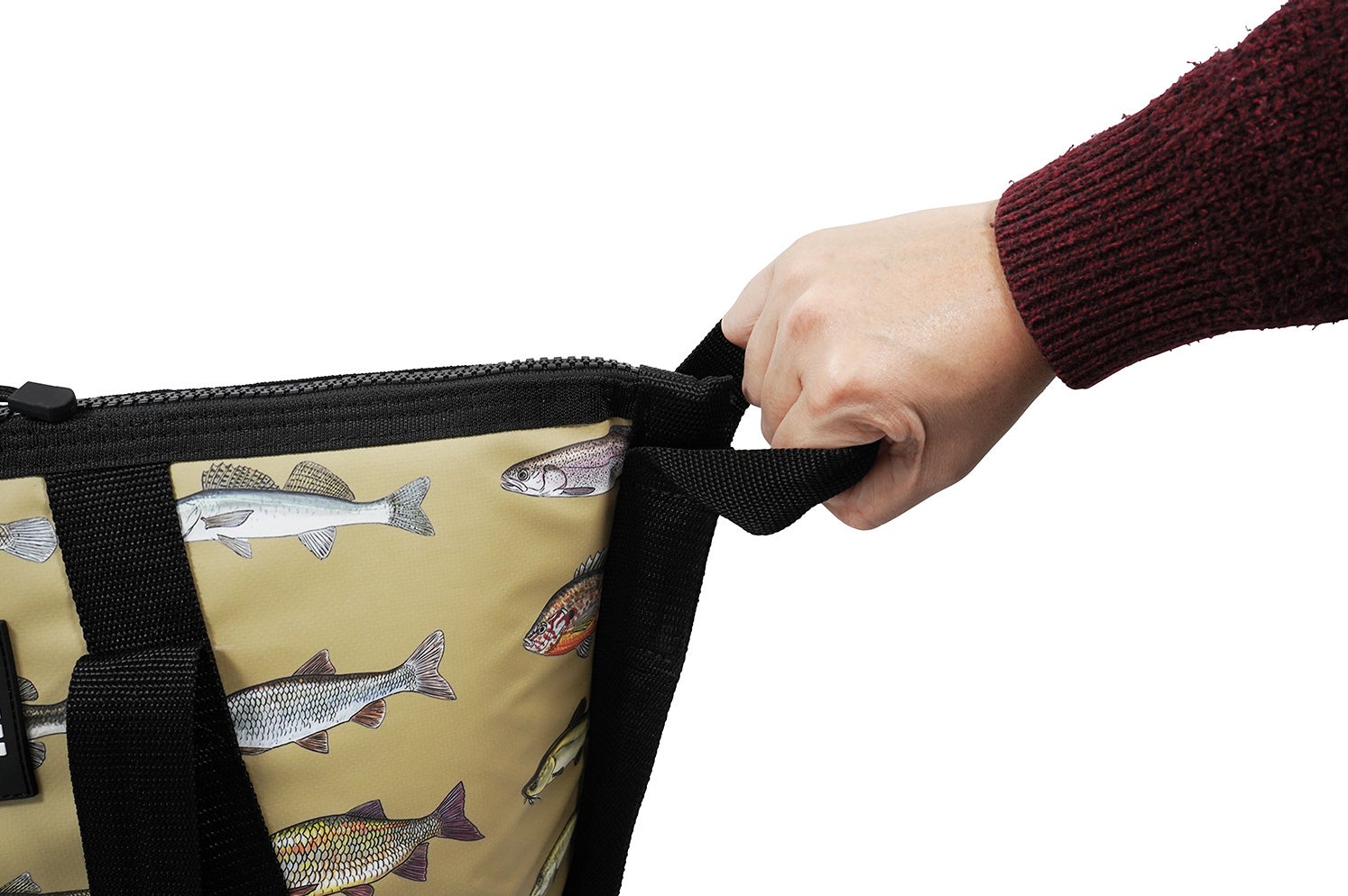 魚の運搬を容易にしたモデル。トート型にすることで肩掛けがしやすく、足場の悪い場所でも安心して持ち運びすることができます。
