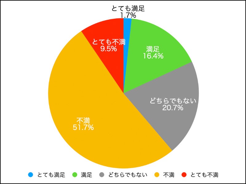 全体の集計結果と比べて、「満足度が低い傾向」ありますが、「不満・とても不満」と回答した人の割合は僅かに大きくなっているだけでした。