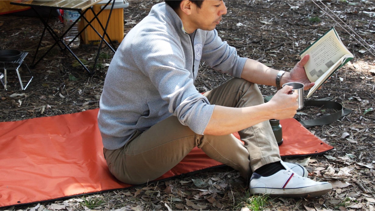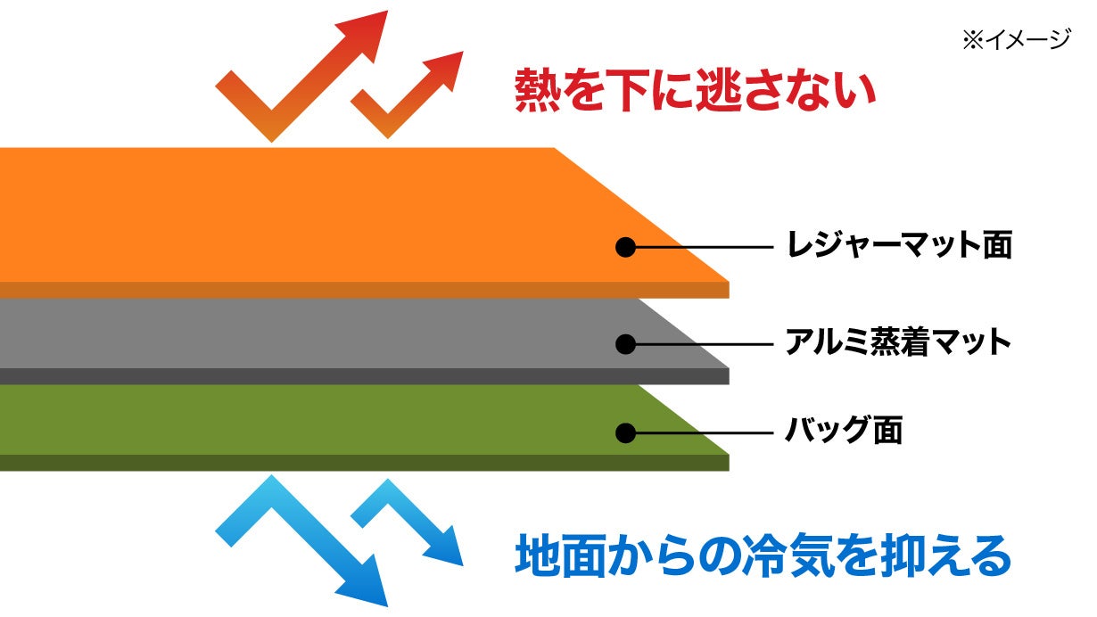 マットの片面には断熱性を高めるアルミ蒸着加工。身体の熱を反射し保温し身体を冷気から守ります。丸ごと水洗いできて清潔に保てる様々なシーンで大活躍