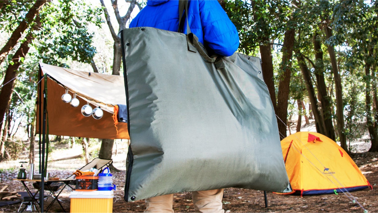 こんな大きなバッグ見たことない!?大人1人が寝られるレジャーシートにもなるビッグバッグ「FLATLESS」