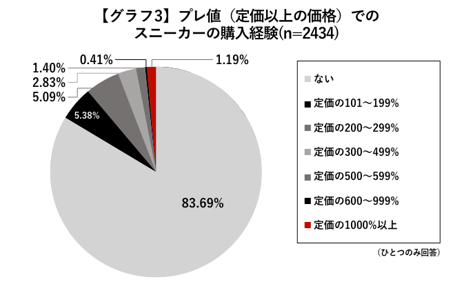 スニーカーを定価以上(プレ値)で買ったことがある人は約16%。