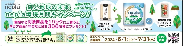 「森と地球の未来 nepia環境月間キャンペーン」では、原料・商品規格からパッケージまで環境に最大限配慮した、サステナブルな商品「ネピ eco」シリーズを対象としたマストバイキャンペーンを実施します。