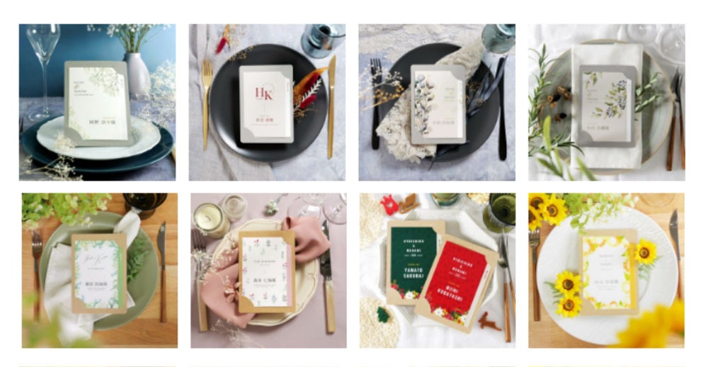 結婚式アイテムの企画・販売を行う株式会社ファルベ(広島市/https://www.farbeco.jp/)は、人気の「メニュー表付き席札シリーズ」に新たにカードタイプ8デザイン発売いたしました。