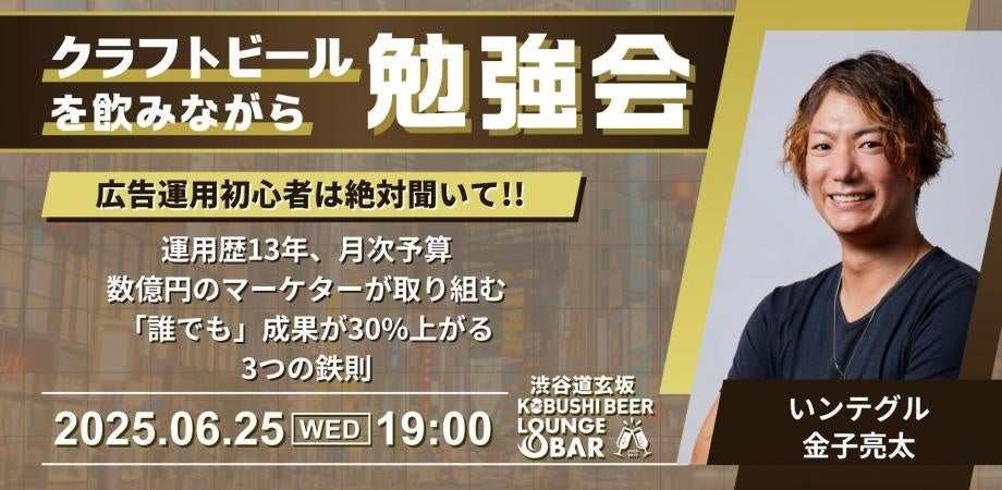渋谷道玄坂『KOBUSHI BEER LOUNGE & BAR 』で、クラフトビールを飲みながら学べる勉強会を開催!6月25日(水)19:00~テーマは「広告運用の成果が30%上がる3つの鉄則」