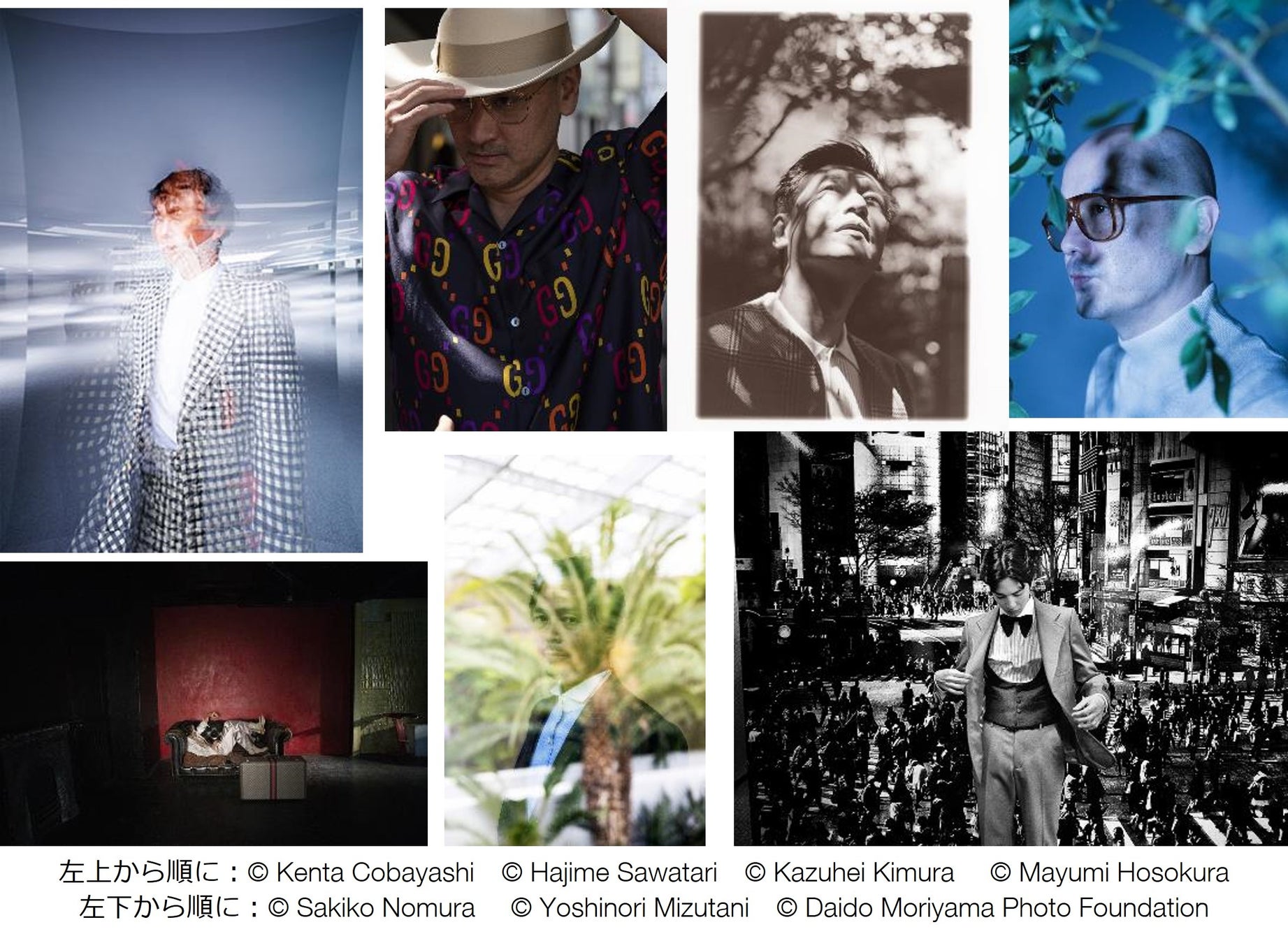 このコラボレーションでは、木村和平、小林健太、沢渡朔、野村佐紀子、細倉真弓、水谷吉法、森山大道ら7名の写真家が、グッチのグローバル ブランドアンバサダーを務める志尊淳(俳優)をはじめ、井浦新(俳優)、石上純也(建築家)、金子ノブアキ(ミュージシャン/俳優)、久住有生(左官職人)、森岡督行(森岡書店代表)、吉田修一(作家)といったさまざまな分野で活躍する7名のジェントルマンを被写体に作品を撮り下ろしました。それらの作品は、浮遊するように、あるいは視界を覆い尽くすような圧倒的な臨場感とともに空間に配置され、鑑賞という枠を超えた没入体験を通して、現代日本における新たなマスキュリニティや自由な自己表現に基づく男性たちの在り方を問いかけます。またそこには、浅間国際フォトフェスティバルが掲げる今年度のテーマ「Mirrors & Windows(鏡と窓)」のもと、先行きが不確実で不透明であると言われるこの時代に、自身を見つめ、また社会を覗く手段としての写真の意味と役割、そしてその力について、あらためて捉えてみようという思いも映し出されています。
