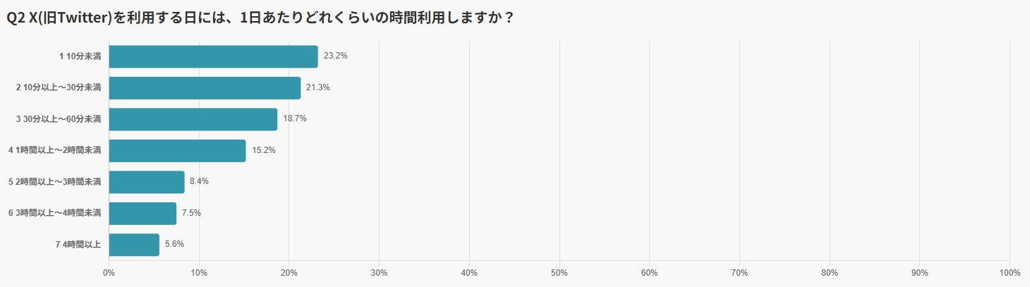 X(旧Twitter)を利用していると回答した方々が、1日の生活の中で実際にどの程度の時間を費やしているのか、その利用の深さを整理します。