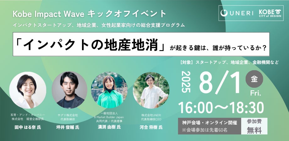 【神戸市×UNERI】全国のスタートアップと神戸地域企業対象のプログラム「Kobe Impact Wave」募集開始。