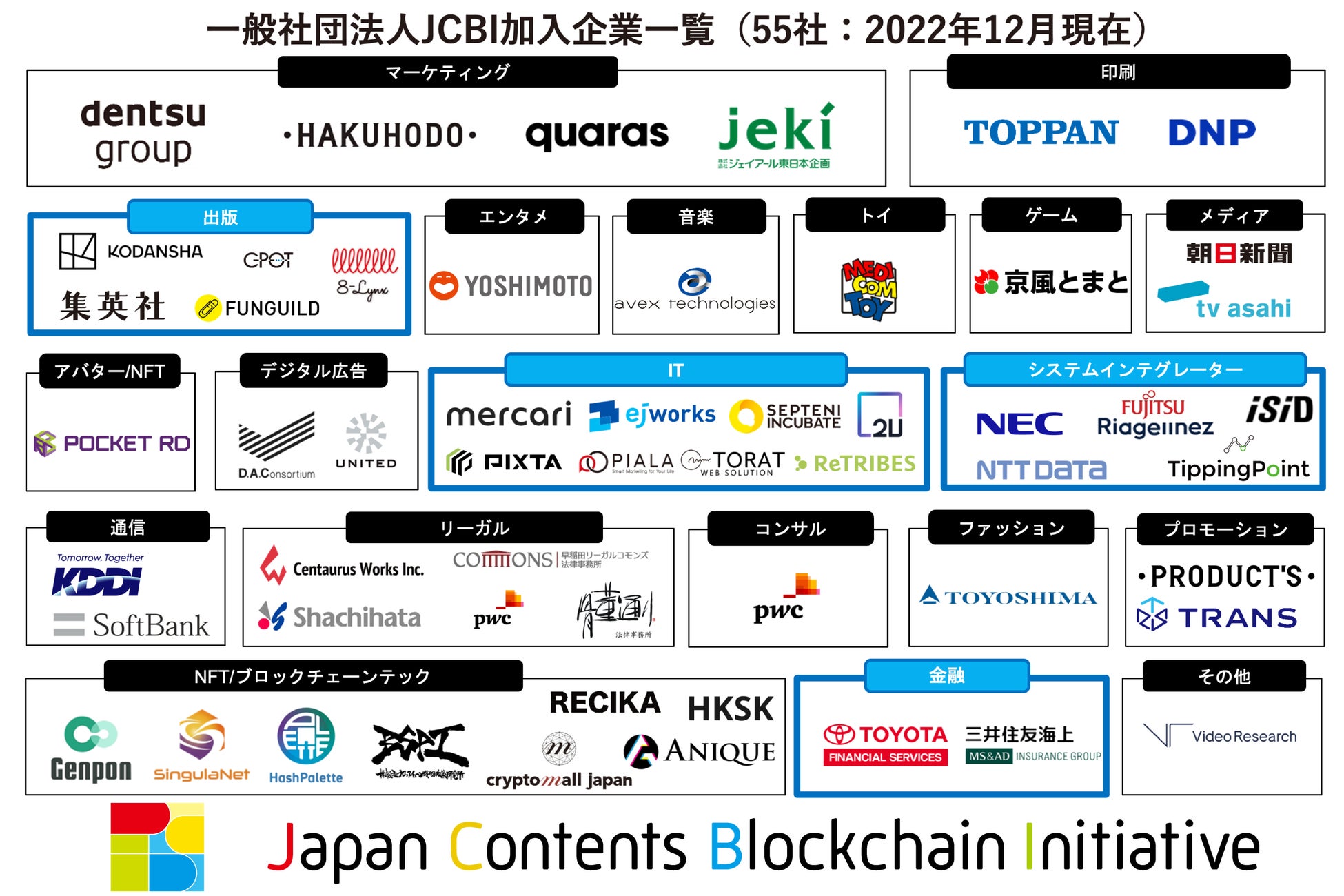 株式会社メルカリ(東京都港区、代表取締役CEO:山田進太郎)、日本電気株式会社(東京都港区、代表取締役 執行役員社長 兼 CEO:森田隆之)、株式会社集英社(東京都千代田区、代表取締役社長:廣野眞一)、トヨタファイナンシャルサービス株式会社(愛知県名古屋市、代表取締役社長:頃末広義)、株式会社イージェーワークス(神奈川県横浜市、代表取締役社長:枝松徹)の5社が、新たに一般社団法人ジャパン・コンテンツ・ブロックチェーン・イニシアティブ(一般社団法人Japan Contents Blockchain Initiative・略称、一般社団法人JCBI)に加入しましたのでお知らせします。