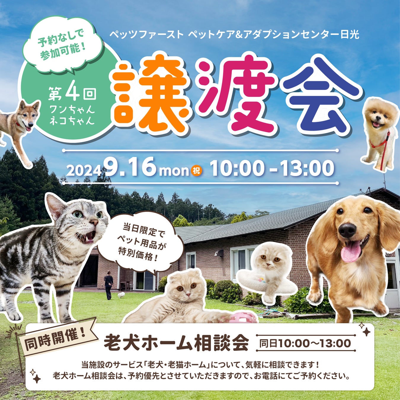 ペッツファーストグループ「第4回 犬猫里親譲渡会」開催のお知らせinペットケア&アダプションセンター日光