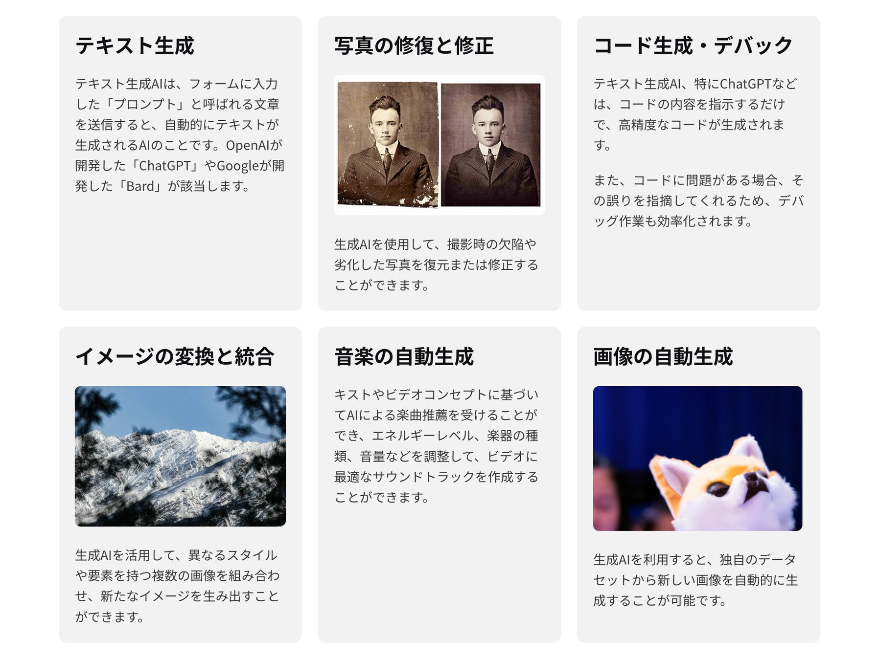 AI技術の進化とともに登場した生成AIについての基本的な概念を解説しました。