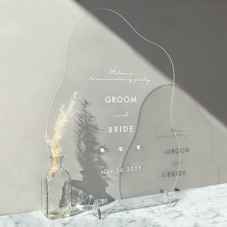 ウェーブの形が今どきらしいデザインのウェルカムボード。