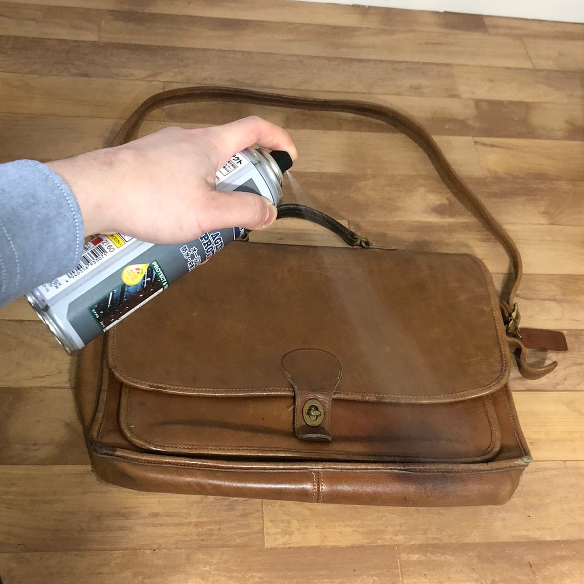 1.皮革製品から20cmほど離して表面が軽く濡れる程度に均一に吹き付けてください。