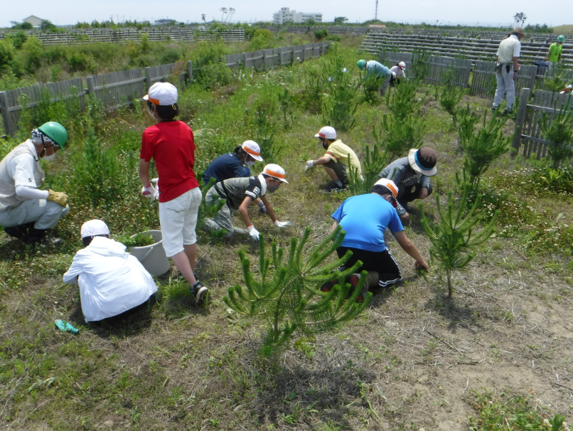 同機構では「緑の募金」を実施しており、自然災害で大きな被害を受けた被災地域において、防災林などの森林整備及び居住地や学校周辺の緑化などを支援する被災地域復旧・復興事業に取り組まれています。