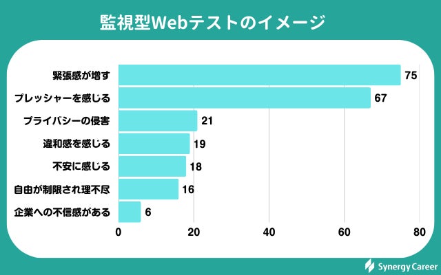 監視型Webテストに対してのネガティブなイメージとしては「緊張感が増す」(70.8%)や「プレッシャーを感じる」(63.2%)という就活生が多く見られました。