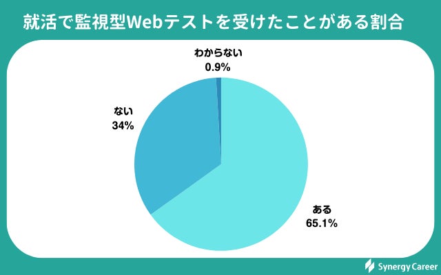 1、就活生の65.1%が監視型Webテストを受けたことがあると回答