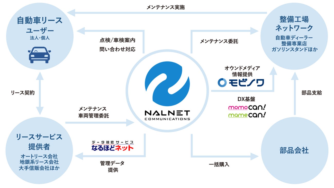ナルネットコミュニケーションズは、モビリティのインフラを支えるコンサルテーション& BPO(ビジネス・プロセス・アウトソーシング)企業です。オートリース会社からリース車両のメンテナンスを受託し管理する事業、個人向けのマイカーリースサポート事業、残価保証や関連事務サポートなどのBPO事業の3つを柱に事業を展開しています。メンテナンスに関わるデータを管理し、適切なタイミングおよび内容の点検整備で効率化と透明化を図るほか、ニーズに沿った個別リース商品の企画・提案を行います。自動車保険も含め一定料金でご利用いただけるメンテナンスパックの販売も手掛けています。これらの事業を支えるバックボーンとして、全国約13,000ヶ所の整備工場ネットワークを構築しており、拠点数は今後も増える予定です。
