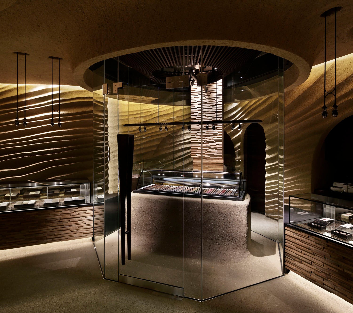 店内でさらにガラス張りで仕切られているスペースが「1000‰(センパーミル)」。オープンショーケースには常時29種類のボンボンショコラが並びます。