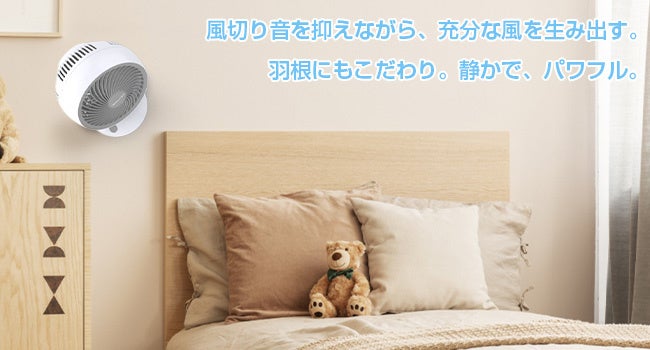 風力は3段階で切り替え可能。お使いになる場所やお好みに合わせて自由に風量を調節できます。5枚羽根で強力な風量を確保しつつ、回転音が気にならない静音設計です。睡眠中や作業中でも音が気にならず、生活の妨げになりません。