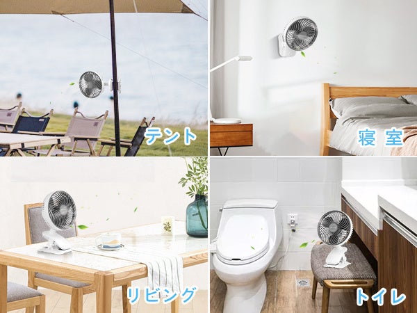 クリップ式で様々なところに挟んで使用が可能です!クリップの底面部には、台座として使えるように滑り止めが付いており、卓上に置いても使用が可能です!壁掛け用フック穴が本体底面に設置してあり、壁に掛けて使用することも可能です。扇風機本体の高さは約26㎝、重さは約500gと軽量コンパクトサイズ、持ち運びがとても楽です。小さなボディでもパワフル、遠くまでしっかり風を届けます。