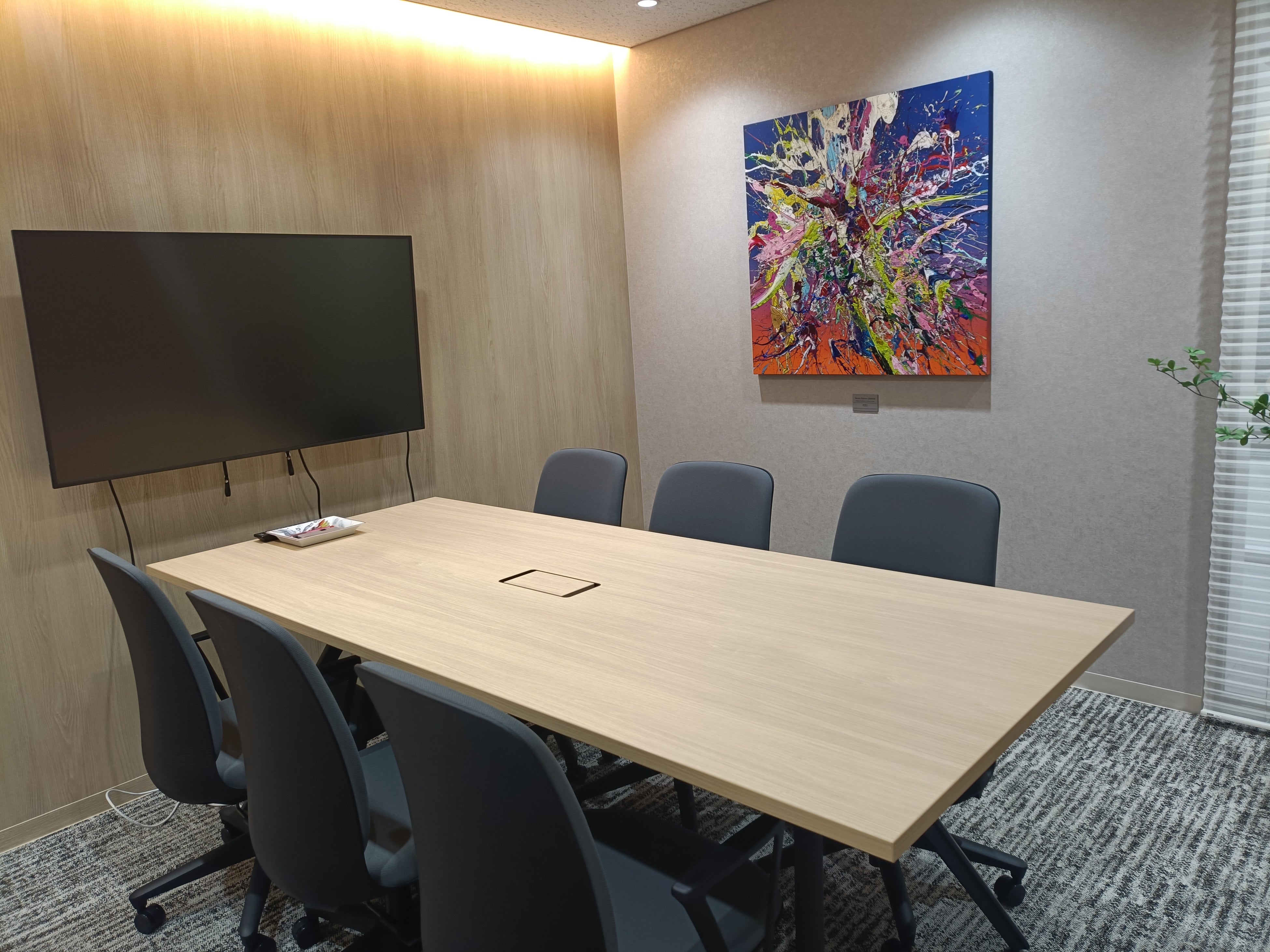 また、オフィス内には代表取締役・田沼豪が所有する現代アート作品を展示しており、バンクシーの原画を含む国内外アーティストのアートが来訪者を迎えます。金融という高度な専門性が求められる領域において、合理性だけでなく、美意識や多角的な視点を大切にする当社の姿勢を空間全体で表現しています。